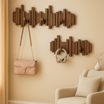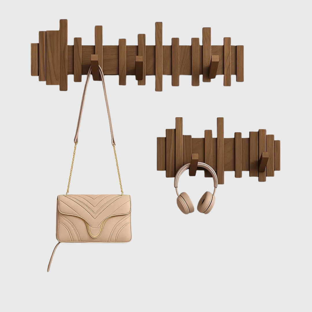 Drewniany wieszak ścienny do przedpokoju pomaga w utrzymaniu porządku i oszczędności miejsca.